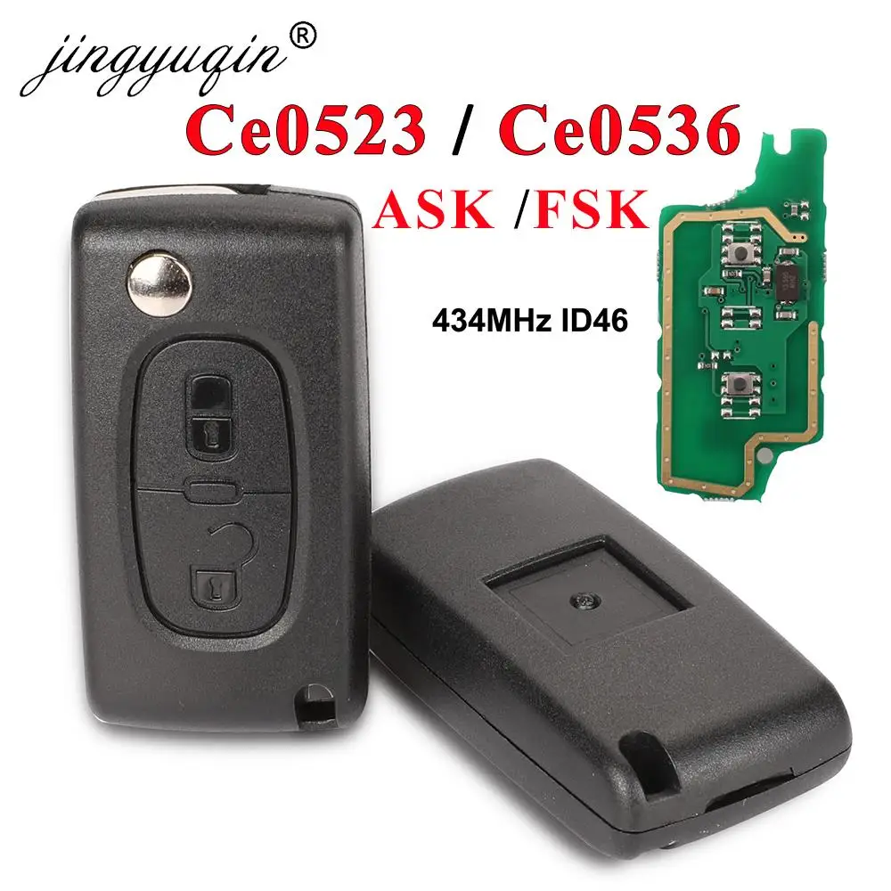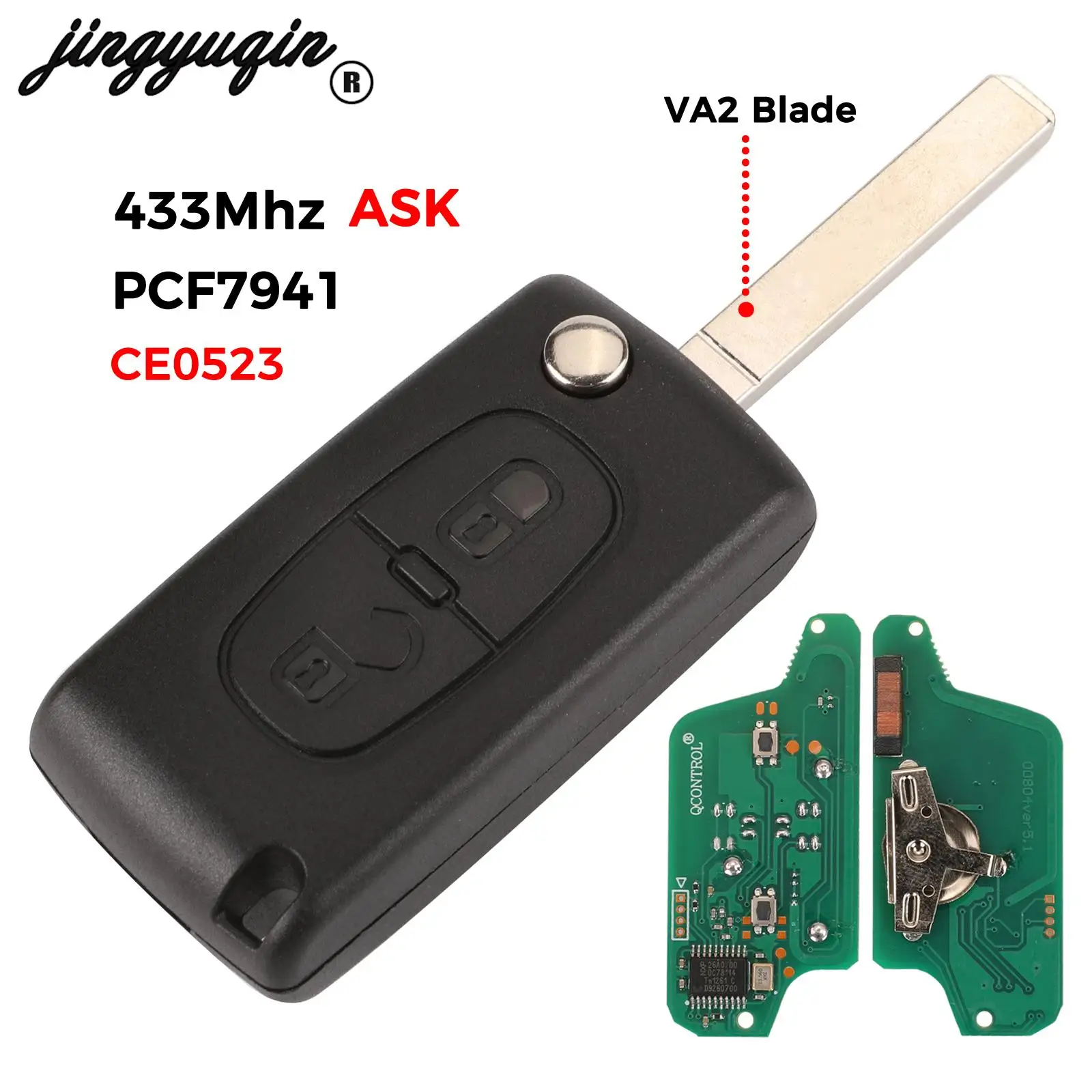 Jingyuqin-Clé de voiture télécommandée, 433MHz, puce ID46 pour cristaux Saxo, Picasso, Xsara, Berlingo SX9, lame à 2 boutons