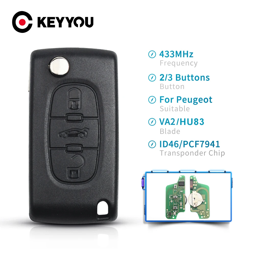 KEYYOU – clé télécommande à molette VA2/HU83, 2/3BT, 433Mhz, transpondeur ID46, pour voiture Peugeot 307, 3008, 308, 408, 433, CE0536, CE0523