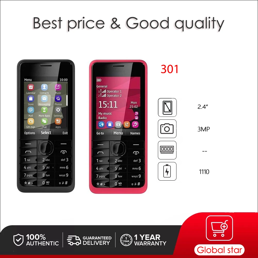 Téléphone portable 301 double SIM 3G débloqué, clavier russe, arabe et hébreu, fabriqué en finlande
