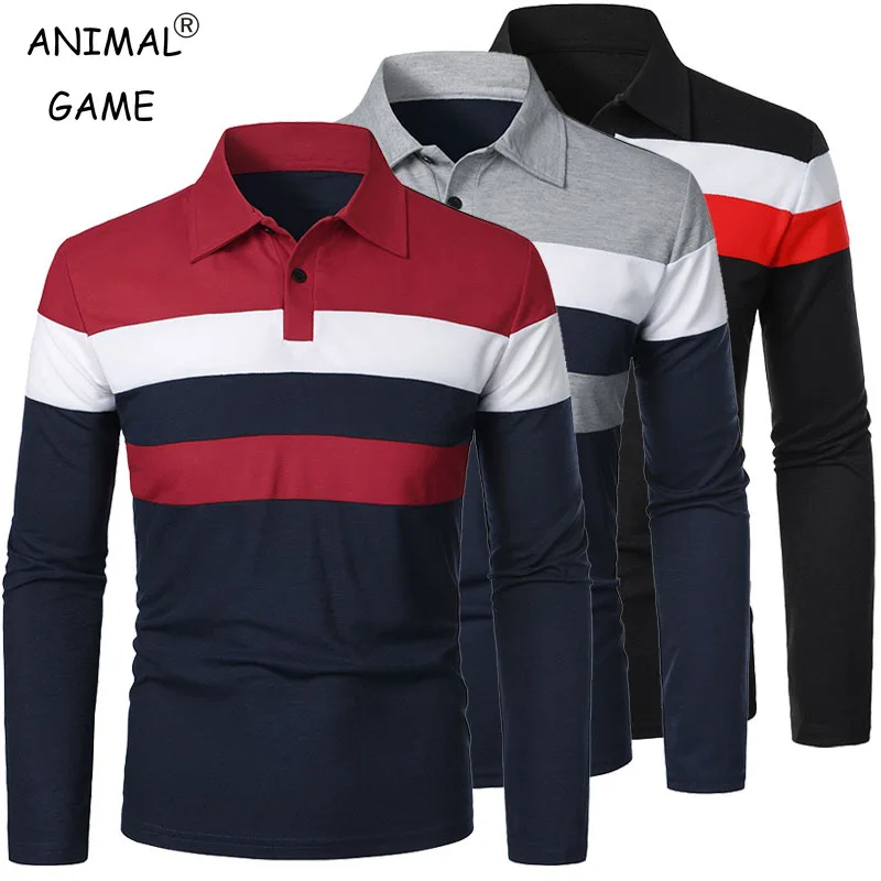 Nouveaux hommes t-shirt à manches longues épissage Polos t-shirt affaires respirant Streetwear basique revers hauts t-shirts légers pour hommes