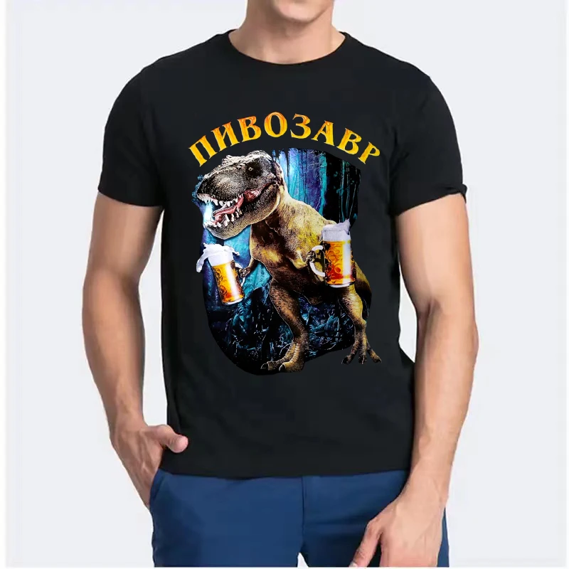 T-shirt à manches courtes unisexe, humoristique et décontracté, avec imprimé de dinosaure et de bière, Harajuku, à la mode, 03