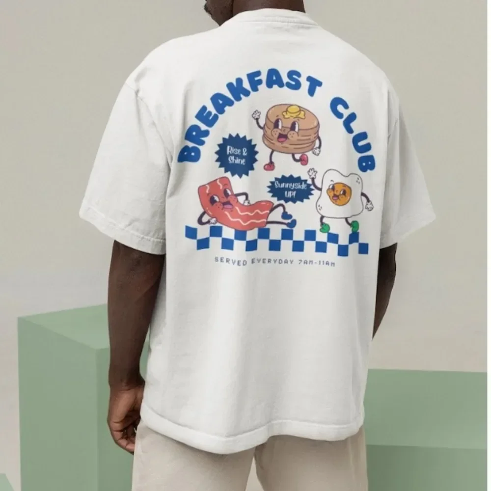 Petit déjeuner Club rétro bohème unisexe Double face T-shirt Vintage imprimé T-shirt Y2K bohème petit déjeuner Restaurant t-shirts graphiques