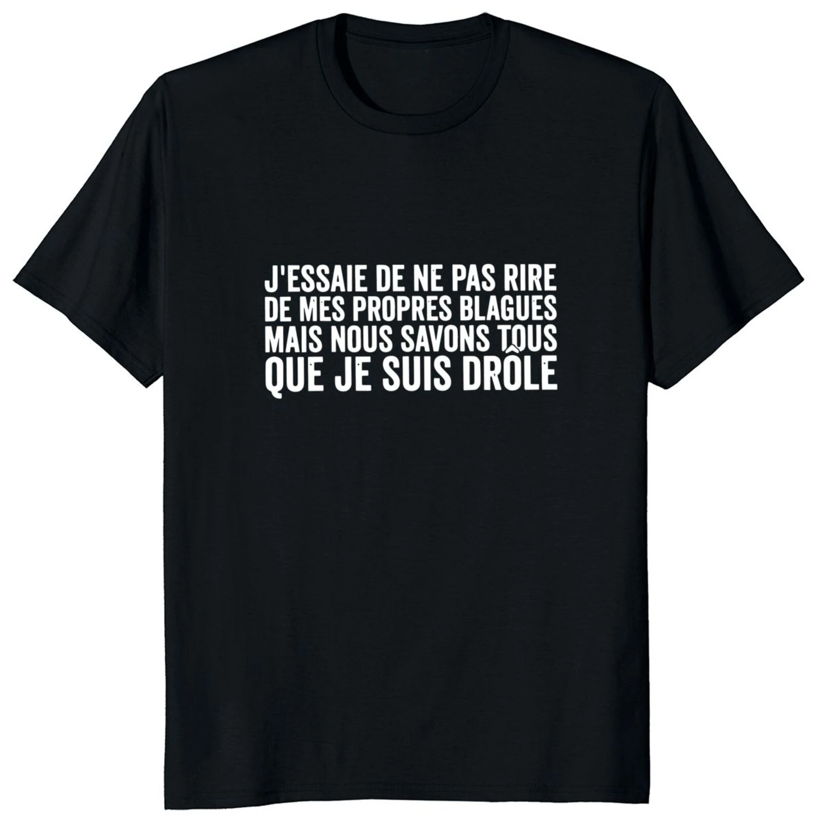 T-shirt manches courtes 100% coton unisexe, humoristique et décontracté, ne pas rire de mes propres blagues, texte français drôle, cadeau doux