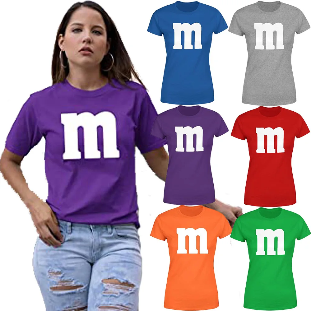 T-shirt Costumes d'Halloween lettre M | Idée drôle et cool du t-shirt graphique | Chemises pour femmes Ropa grande taille Mujer