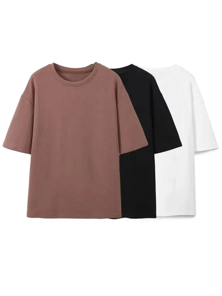 NONE T-shirt d'été 100 % coton pour femme, basique, tendance, uni, à manches courtes, coupe ample, 200g ㎡ Tops