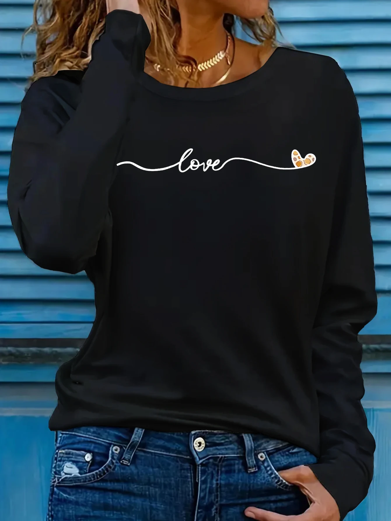 Printemps et automne femmes nouvelle mode vêtements femmes noir décontracté lettre imprimé à manches longues à manches rondes T-shirt