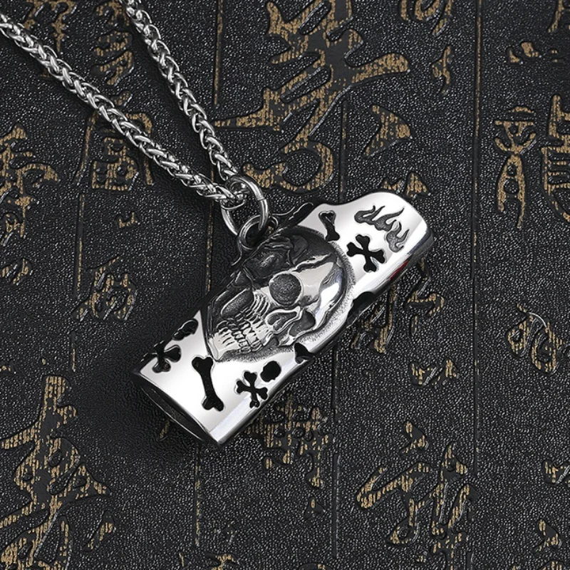 BIC-Ensemble de boîtier à briquet personnalisé en acier au titane pour homme, motif creux rétro, collier pendentif en acier inoxydable, à l'exclusion du briquet