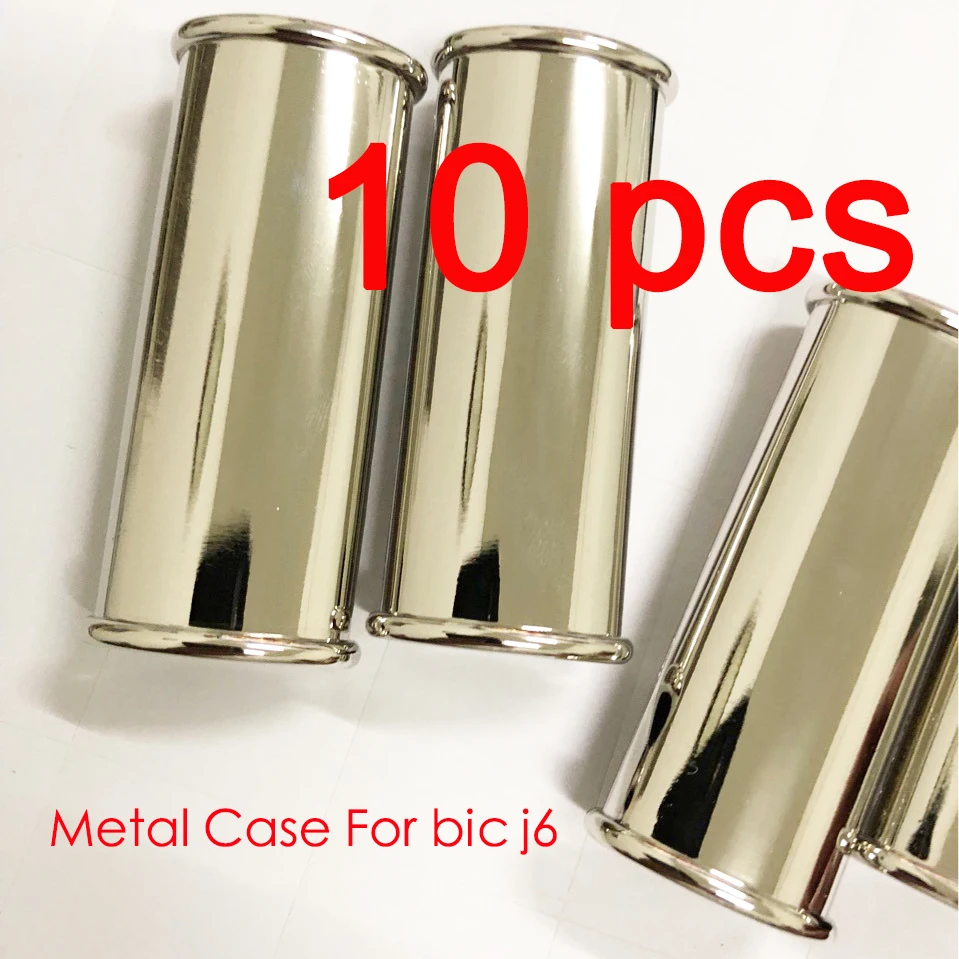 Supports de briquet en chrome brillant BIC J6, grand étui en métal, housse enveloppée en cuir, coque de protection manuelle, bricolage, 10 pièces, ensemble