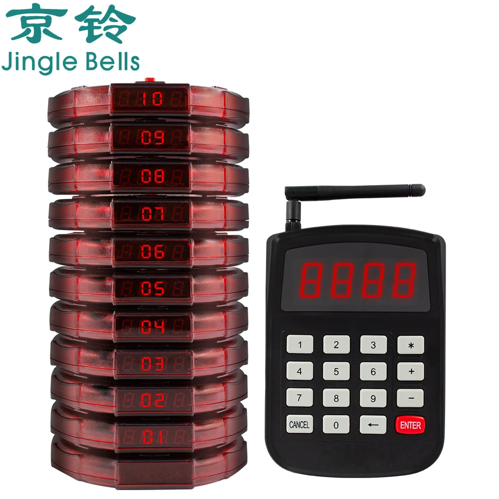 JINGLE BELLS système de radiomessagerie sans fil pour serveur de Restaurant, 1 clavier, 10 téléavertisseurs, 1 chargeur, appel, file d'attente, Buzzer de Service