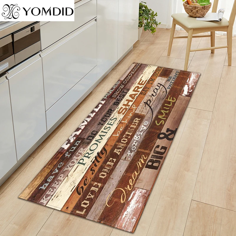 Long tapis de cuisine, paillasson d'entrée de chambre à coucher, décoration de sol de couloir de maison, tapis de salon, salle de bains en grain de bois, antidérapant