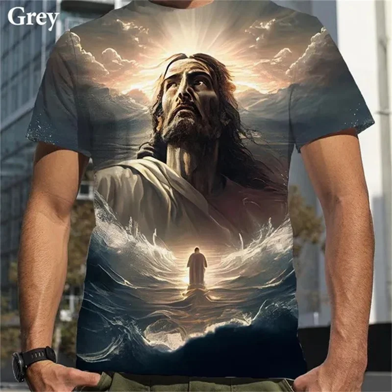 T-shirt imprimé en 3D chrétien, haut décontracté unisexe, mère de Dieu, Vierge Marie, croix de Dieu, Jésus aime tout