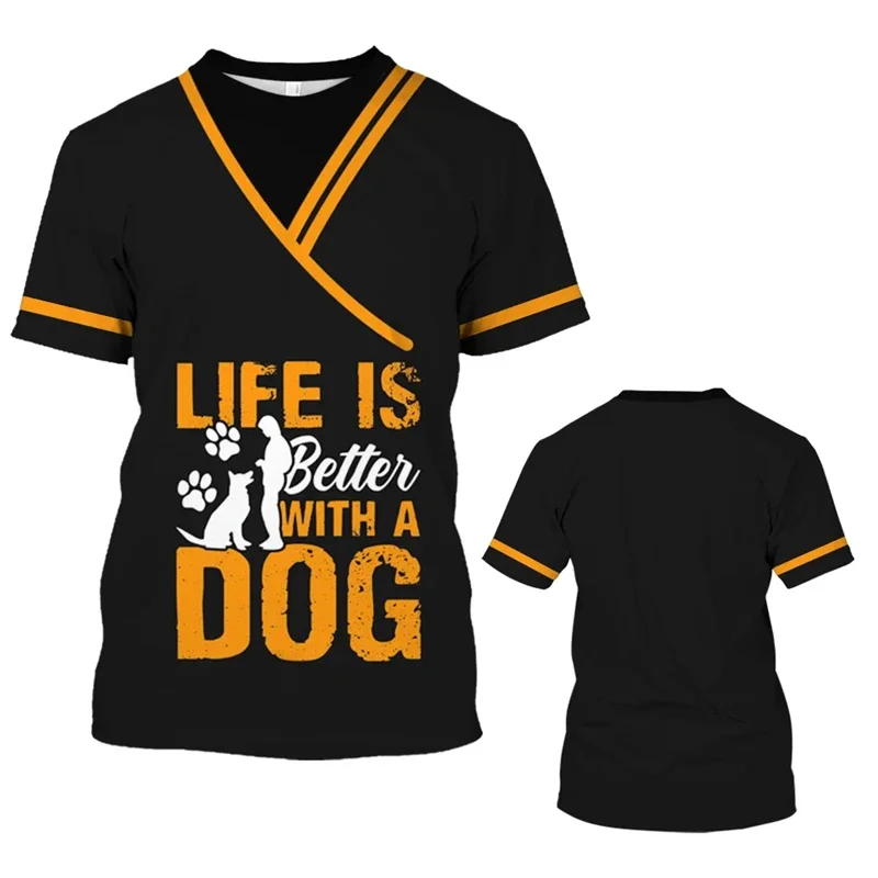 Pet Store – uniforme drôle de toiletteur de chien, t-shirt imprimé en 3D, vêtements de travail quotidiens décontractés, col rond, T-shirt unisexe à manches courtes
