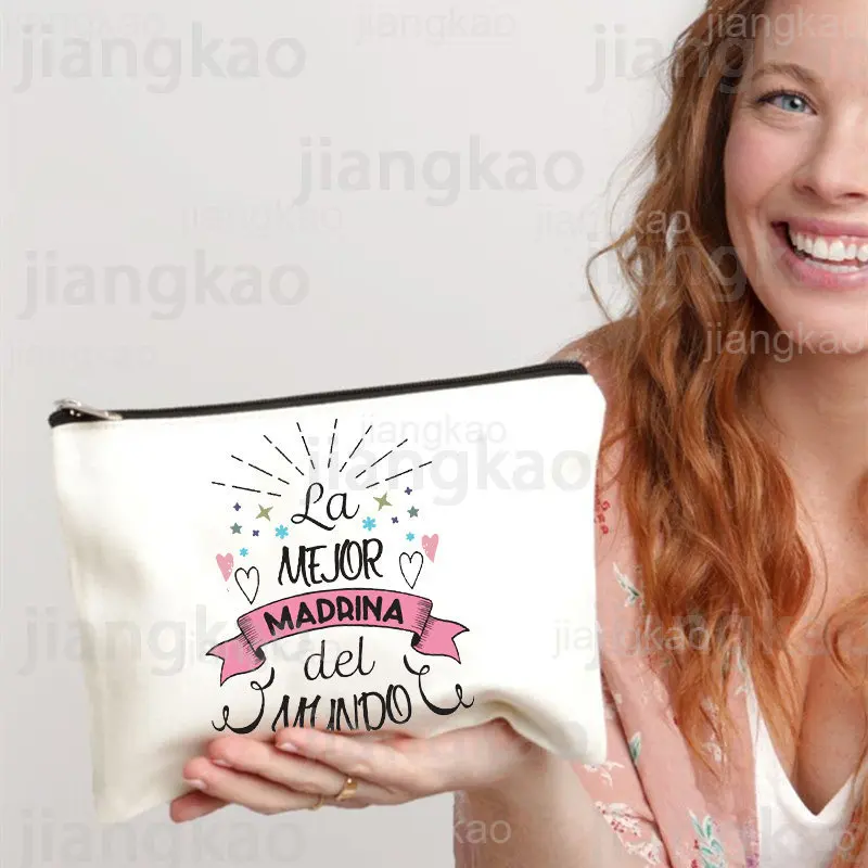 Trousse de maquillage imprimée Best Mardmother in World pour femmes, pochette cosmétique de voyage, trousse de toilette de voyage, pochette à fermeture éclair, cadeaux Madrina