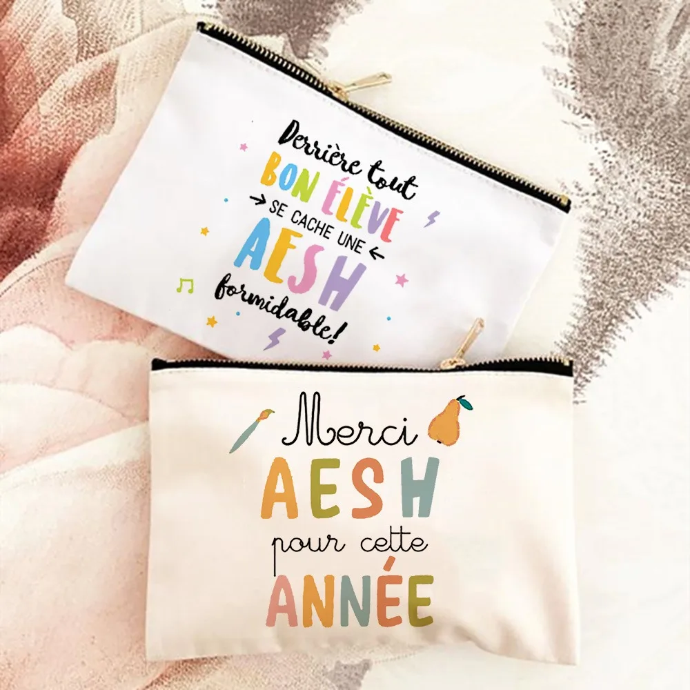 Merci AESH – trousse de maquillage imprimée, organisateur de toilette de voyage, pochette à cosmétiques pour femmes, sacs à crayons d'école, meilleurs cadeaux pour AESH