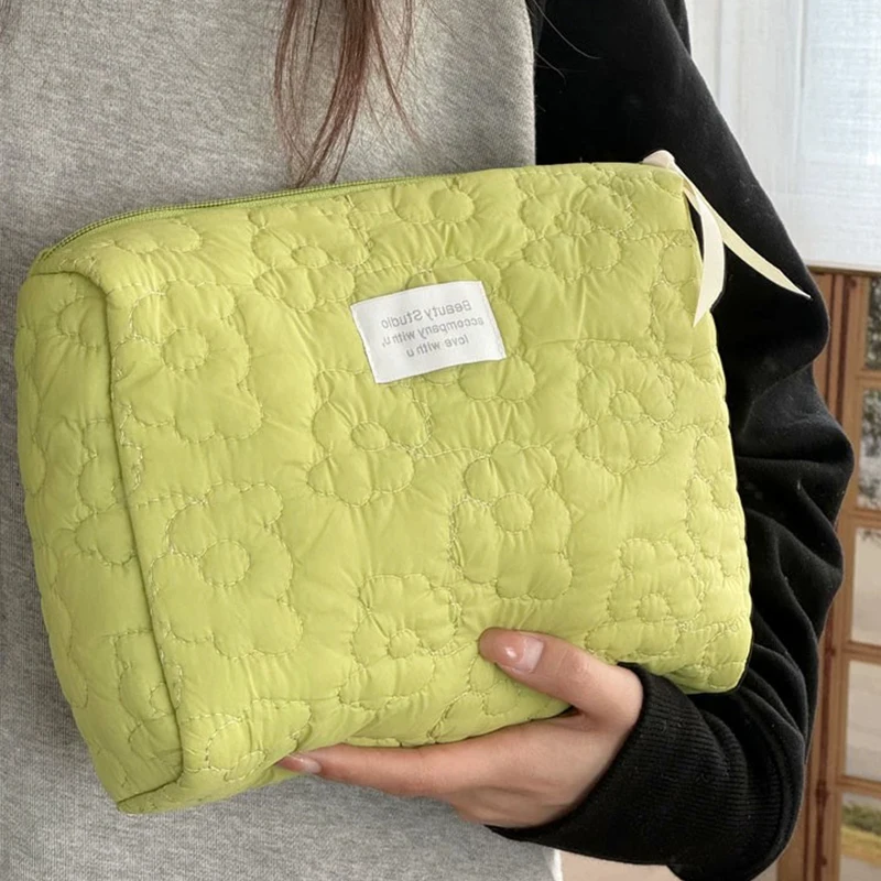 DJDF-Trousse de maquillage double toile beige pour femme, bulle de nuage souple, sac de rangement portable pour cosmétiques, trousse de toilette à fermeture éclair de grande capacité