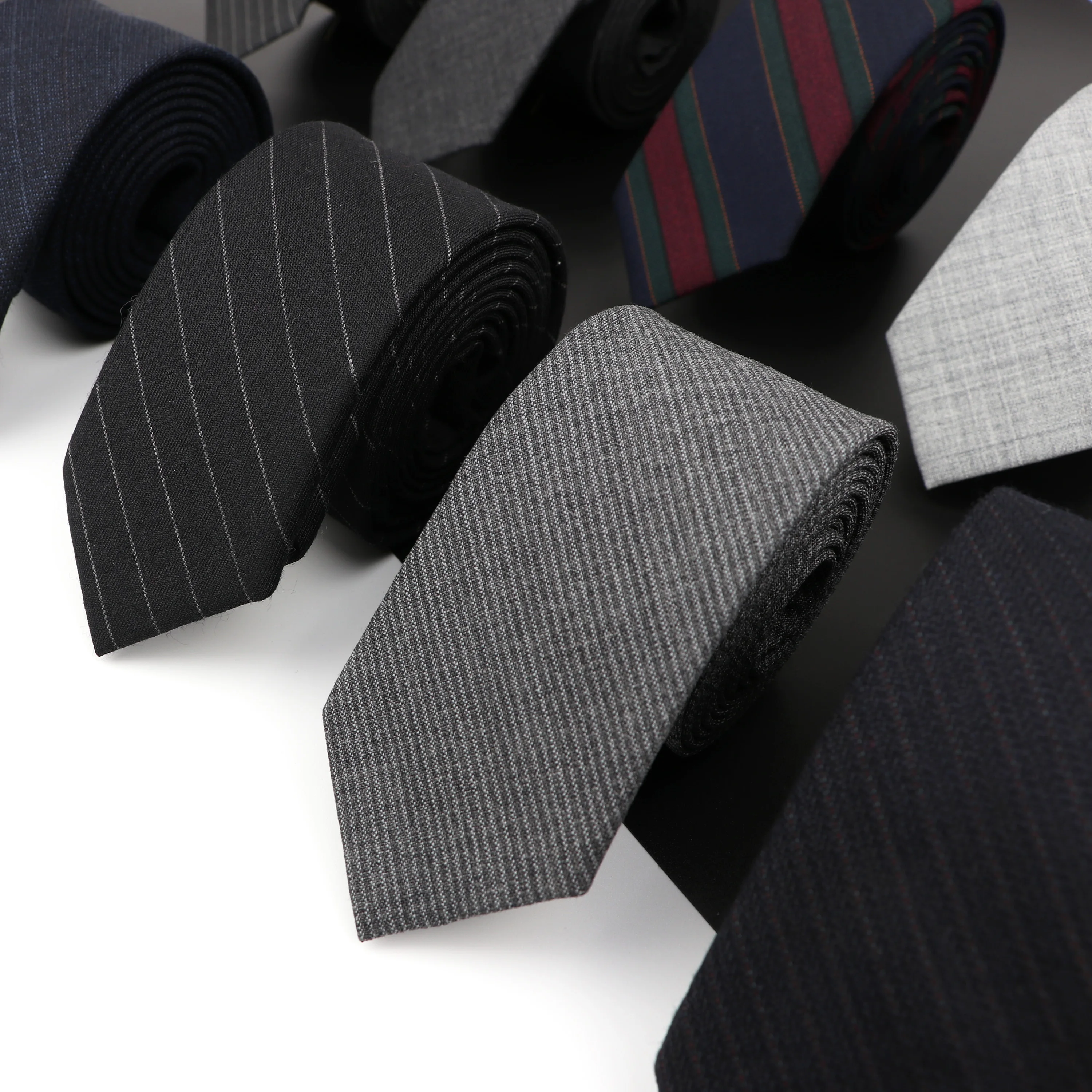 Haute qualité couleur classique noir gris maigre 100% laine cravate hommes cravate pour réunion d'affaires mode chemise robe accessoires