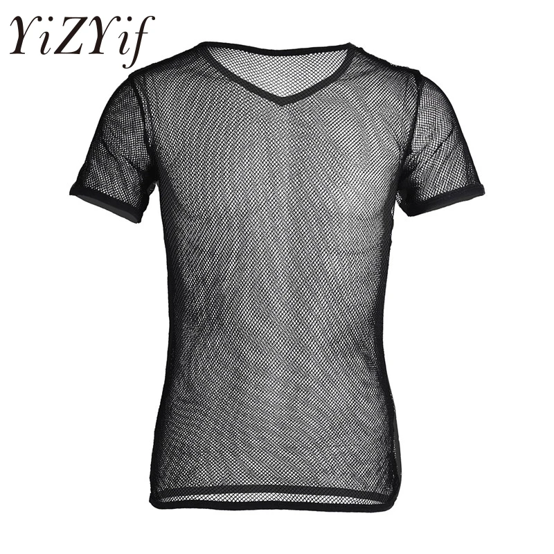 YiZYiF Sexy hommes maille voir à travers t-shirts hauts transparents t-shirts Sexy homme T-shirt Singlet mâle clubwear vêtements T-shirt vêtements