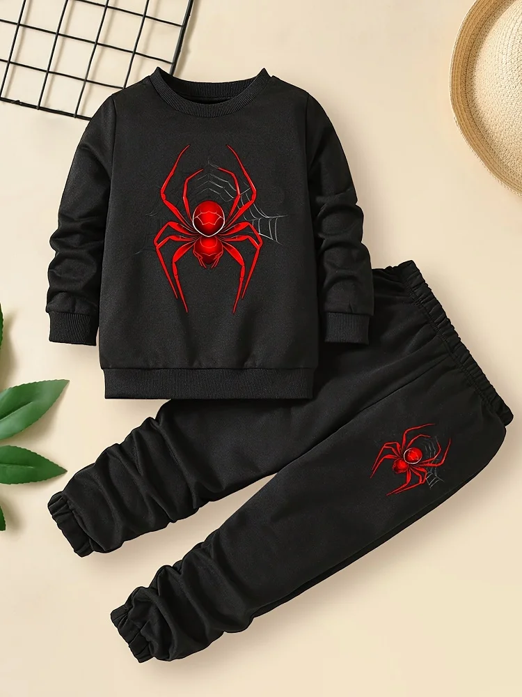 Ensemble de vêtements d'automne pour enfants garçons et filles, sweat-shirt imprimé araignée, pull, haut et pantalon, costume 2 pièces, survêtements à manches longues