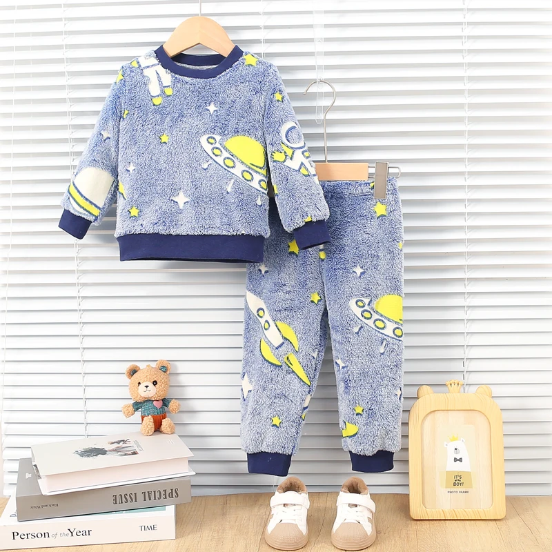 Pyjama chaud structurels ent en peluche pour bébé, ensemble de nuit en fourrure pour la maison, accessoires confortables à la mode pour enfant, automne et hiver