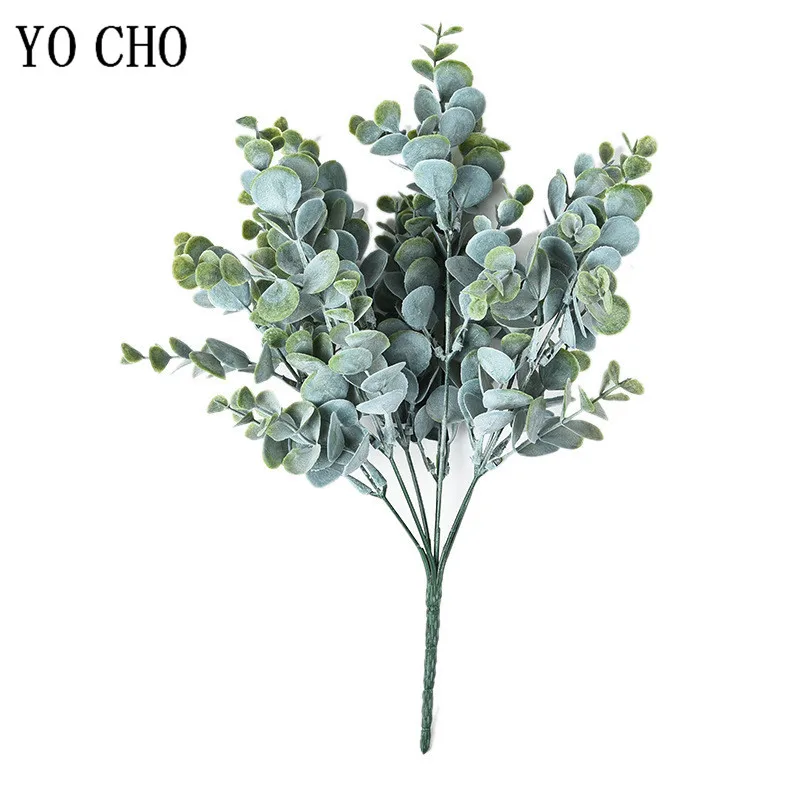 Balance CHO-Faux cuir chevelu d'eucalyptus gris et vert, matériel mural décoratif, feuilles artificielles, 7 fourcommuniste, 35 têtes