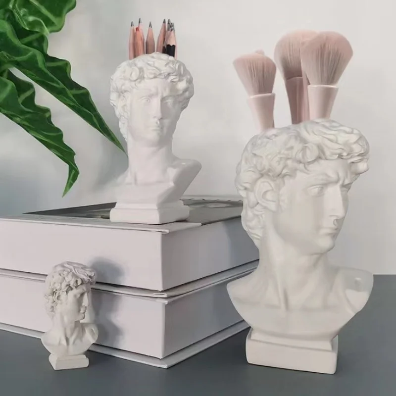 Vase à fleurs en résine de tête humaine, vase de portrait nordique, cache-pot, sculpture de FC, porte-stylo, boîte de rangement pour pinceaux de maquillage, accessoires de bureau