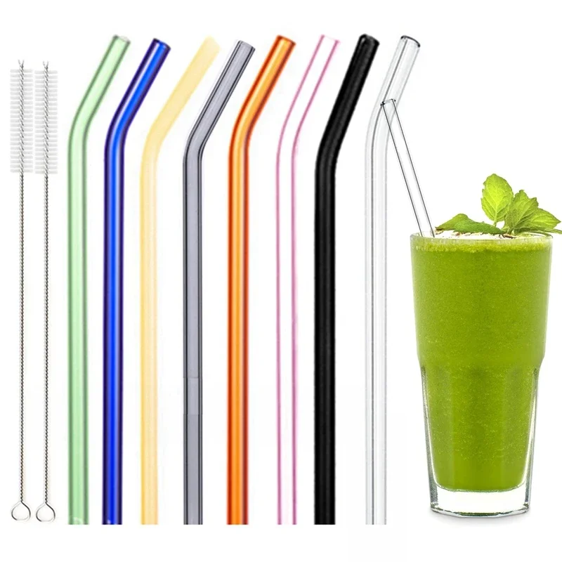 Pailles en verre réutilisables colorées de 20cm, verre à haute teneur en Borosilicate, paille à boire écologique pour Cocktail, Smoothie, Milkshake, ustensiles de boisson