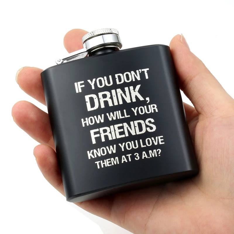 Mini bouteille d'alcool noire en acier inoxydable de 3 OZ pour la hanche, cadeau pour homme, LOGO personnalisé, gravure au Laser