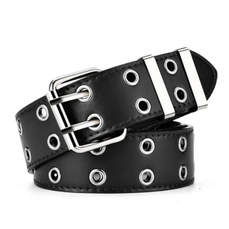 Ceinture Punk en cuir pour hommes et femmes, 3.8cm, réglable, noir, Double œillet, boucle en métal, Rivet Cool, ceinture pour Jeans