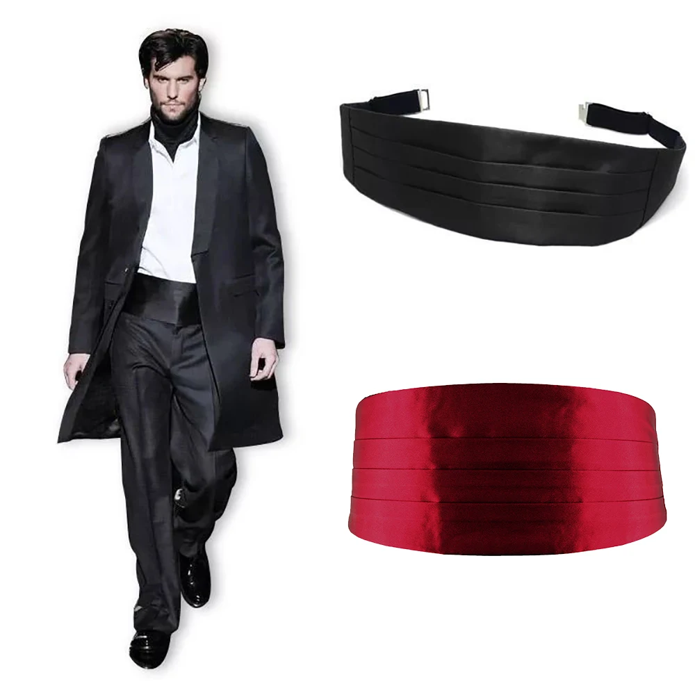 Cummerbunds-Costumes smokings élastiques en satin noir pour hommes, smokings Bellyband, mode messieurs, olympiques de fête de mariage, accessoires de chemises